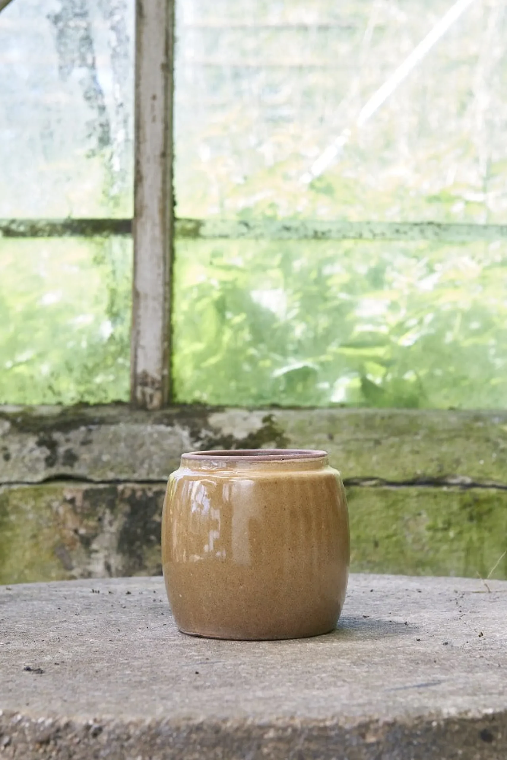 Krukken har ikke drænhul. Vi anbefaler at du kommer et lag lecakugler i bunden af krukken, hvis du planter direkte i den.