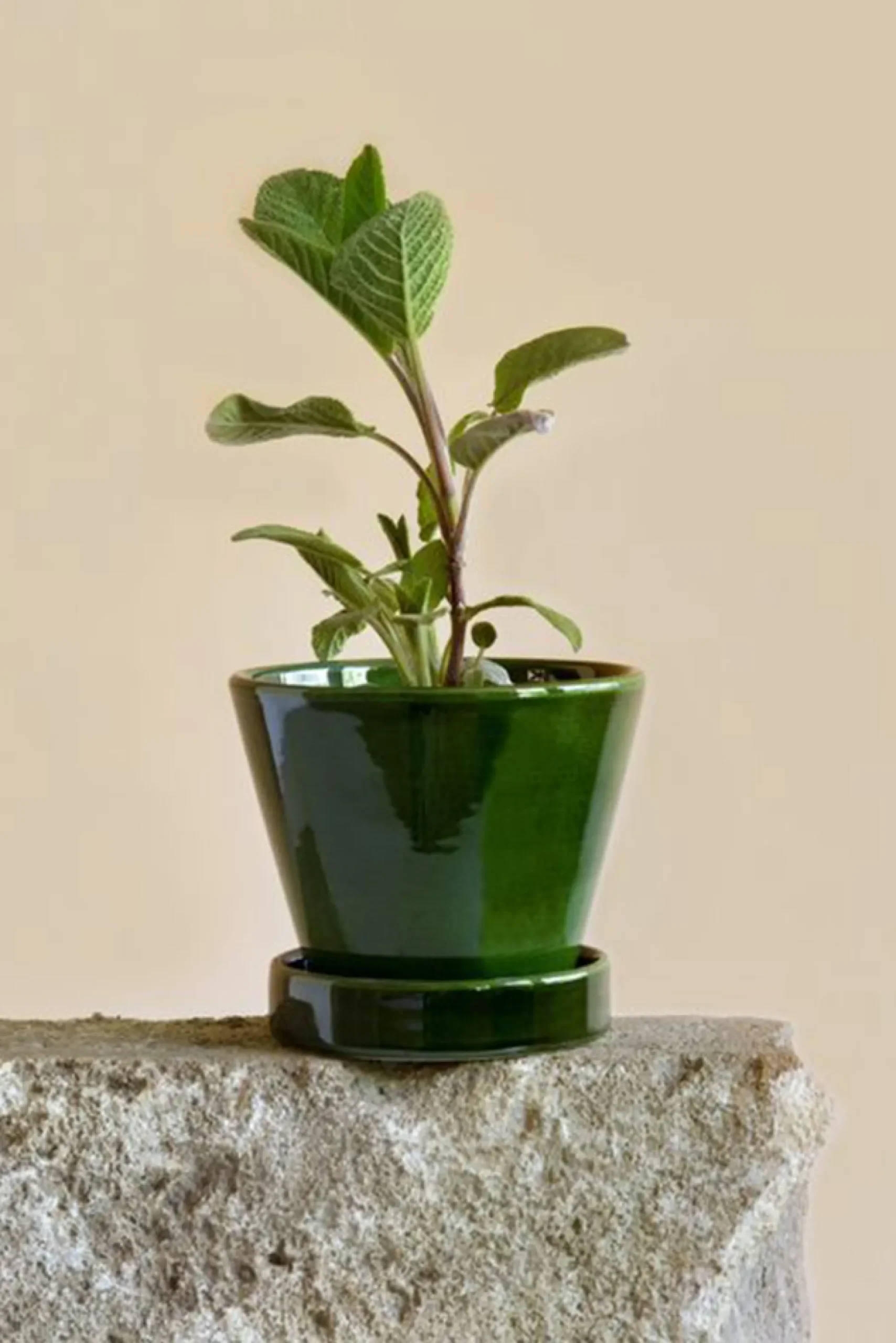 Glaseret krukke hvis dybe mørkegrønne farve er inspireret af Københavns historiske grønne porte. Julie krukken er glaseret i hånden efter traditionelle metoder, og har både drænhul og tilhørende underskål, så du kan plante direkte i krukken.