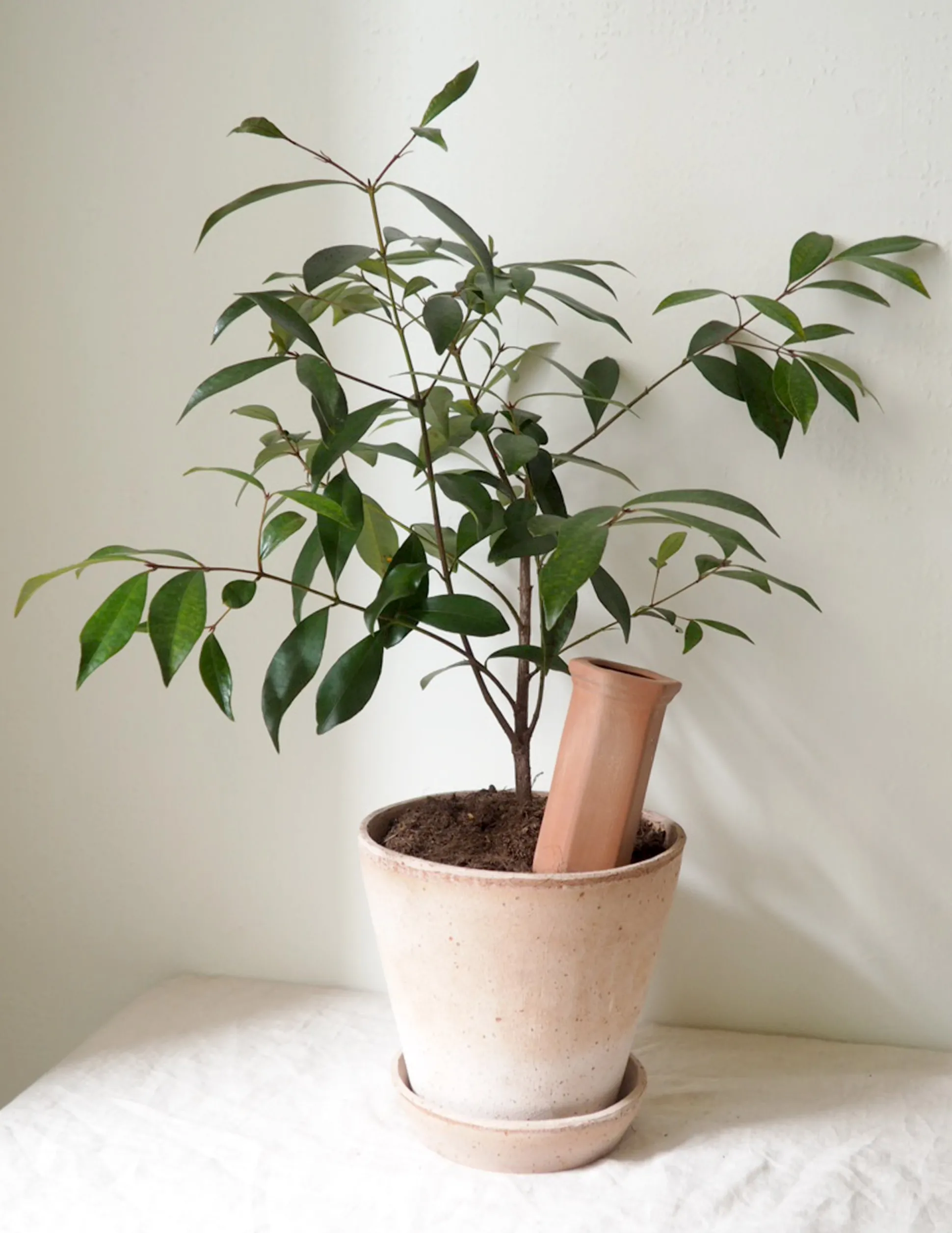 Simpel selvvandingscylinder i terracotta, perfekt til hvis du skal på ferie eller ofte glemmer at vande dine planter. Cylinderen sættes i jorden og fyldes derefter med vand. Herefter vil vandet stille og roligt trænge ud gennem leret og gøre jorden fugtig, i takt med at planten optager vandet. Skal du være væk i en længere periode kan du med fordel fylde en flaske med vand og sætte i cylinderen med bunden i vejret.