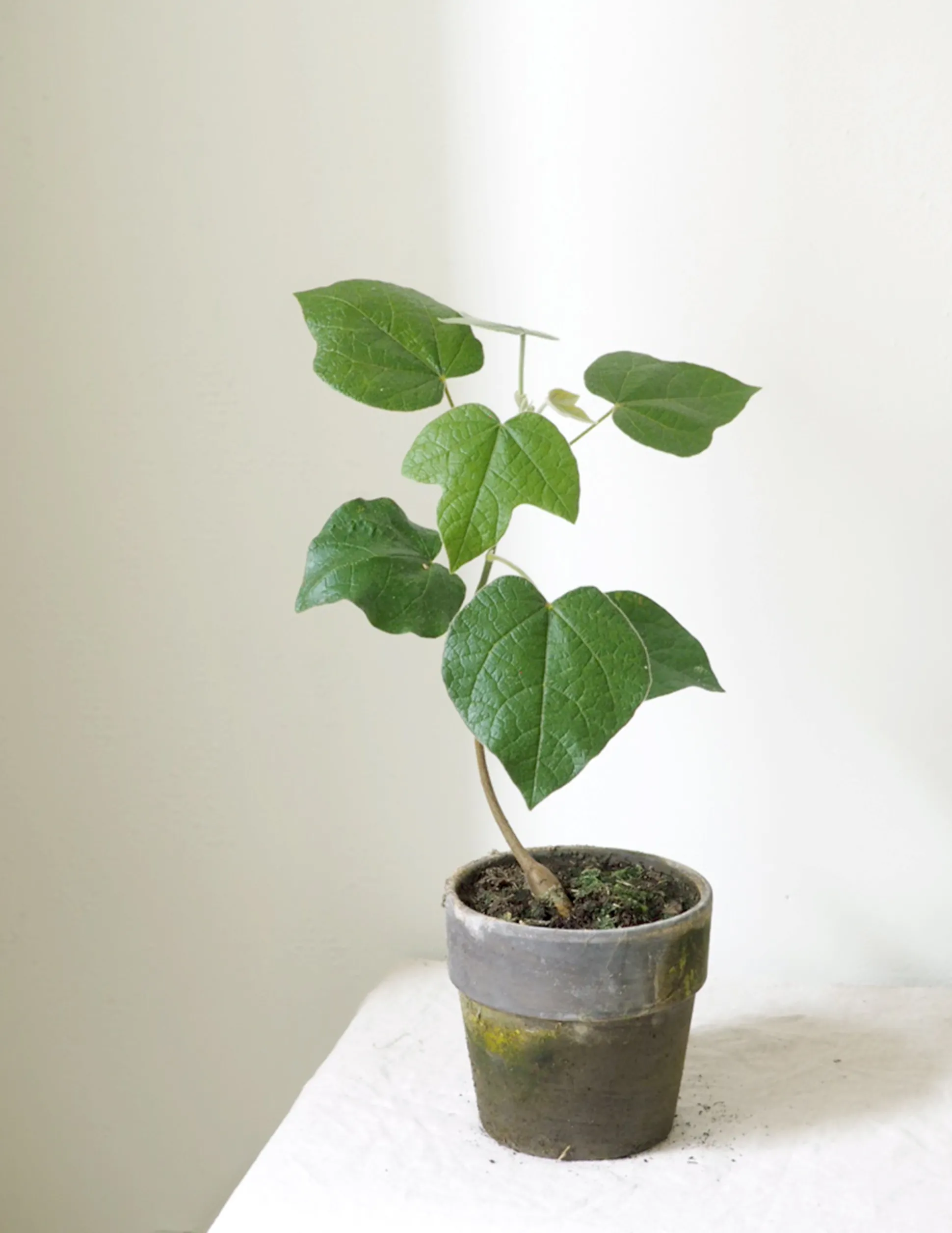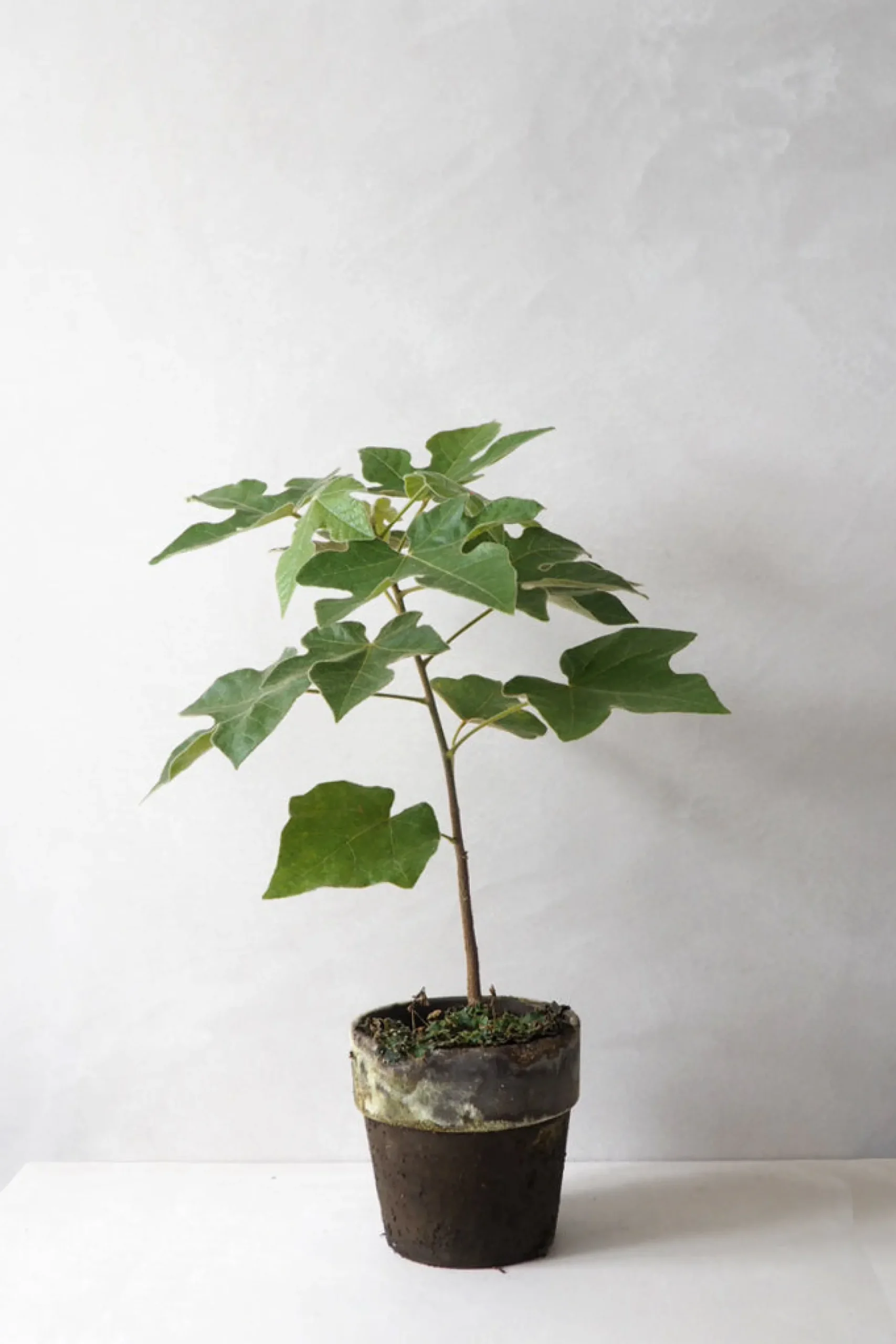 Det Australske Kærlighedstræ (kaldet Brachychiton på latinsk) er et elegant og smukt træ. Der er en lethed over den simple stamme med de karakteristiske blade, som har gjort den til en af de mest populære planter hos os lige nu. Vores danske avler har fire forskellige slags, der adskiller sig i bladenes udseende. Dette Australske kærlighedstræ har femfingrede blade og en tekstillignende struktur i overfladen. Går under kælenavnet Little Kurrajong (Brachychiton bidwillii på latinsk).