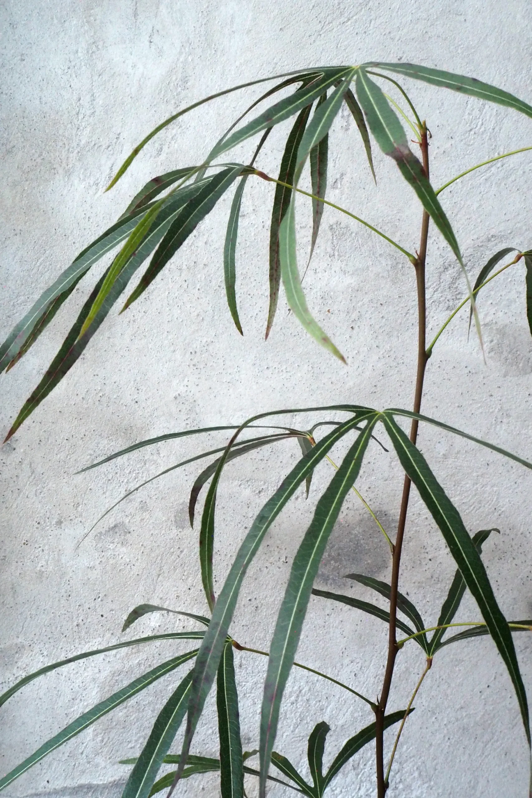 Det Australske Kærlighedstræ (kaldet Brachychiton på latinsk) er et elegant og smukt træ. Der er en lethed over den simple stamme med de karakteristiske blade, som har gjort den til en af de mest populære planter hos os lige nu. Vores danske avler har fire forskellige slags, der adskiller sig i bladenes udseende. Dette Australske kærlighedstræ har blade som er formet som en trefod og en glat smuk overfladen.
