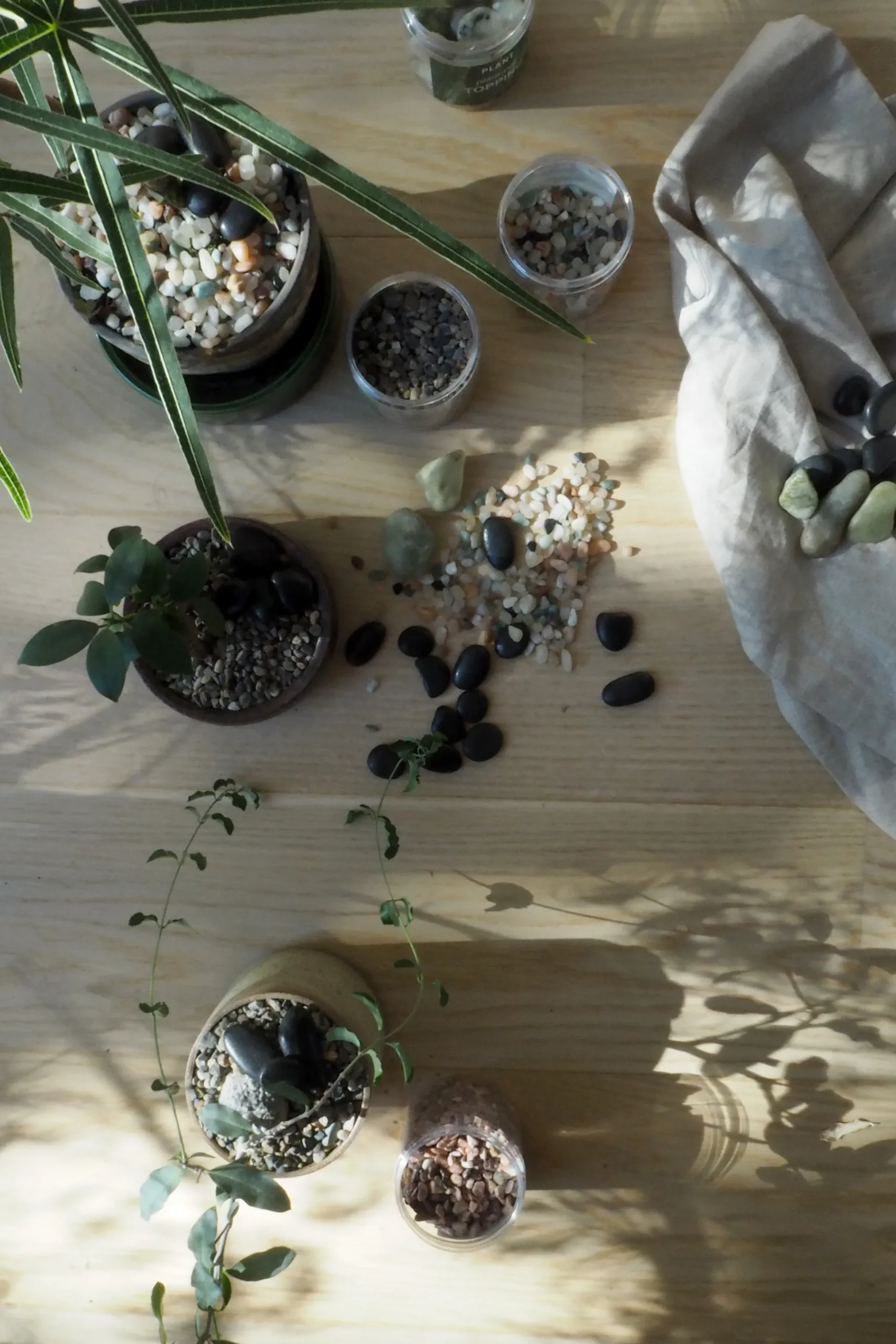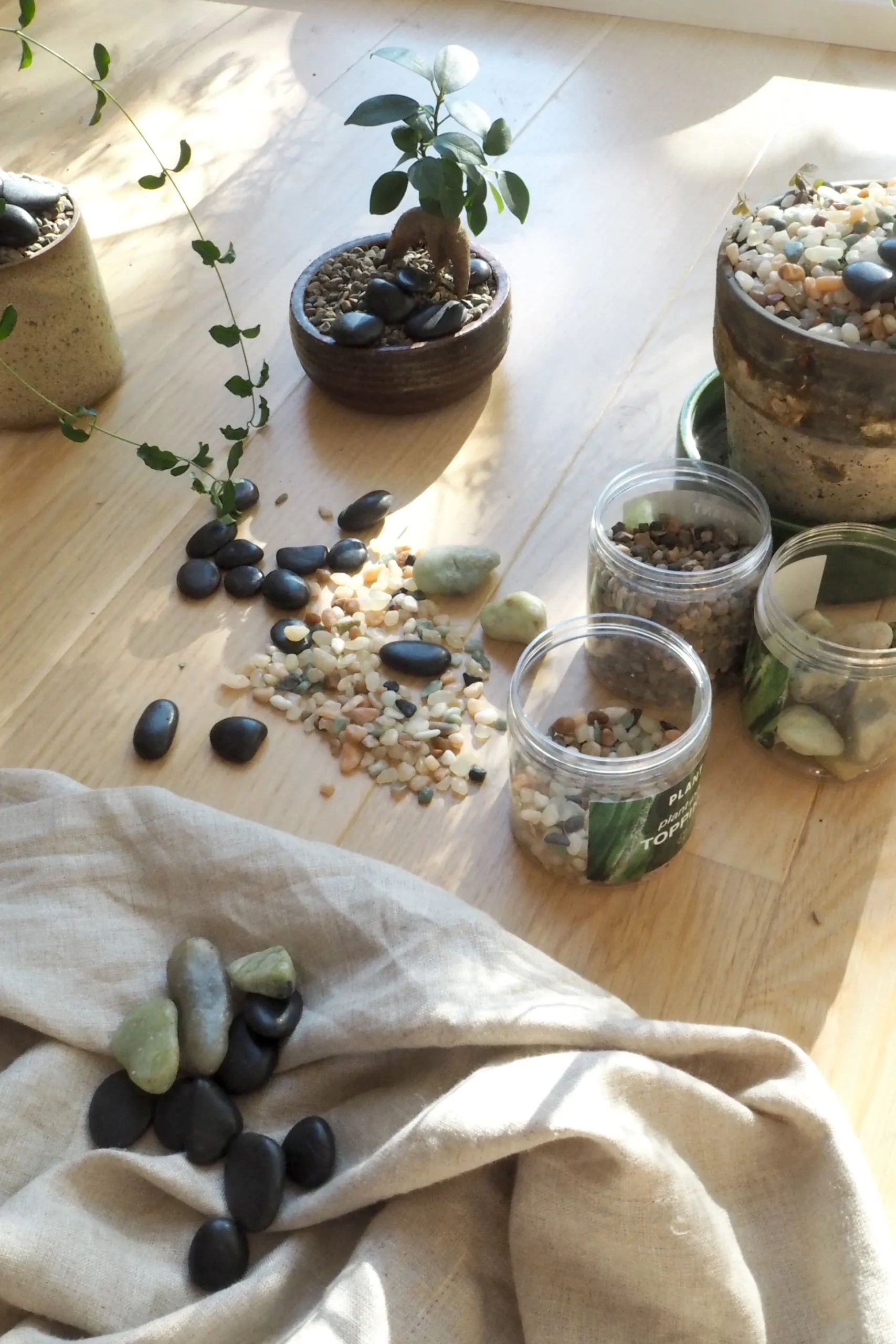 Plant pot topping sten, der giver dine stueplanter et stilfuldt løft. Stenene dekorerer jordoverfladen, hjælper med at bevare fugt i jorden og beskytter samtidig mod skadedyr.